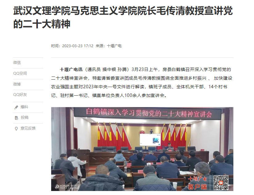 新闻链接:永利3044noc经理毛传清教授宣讲党的二十大精神-十堰广电网 (syiptv.com)