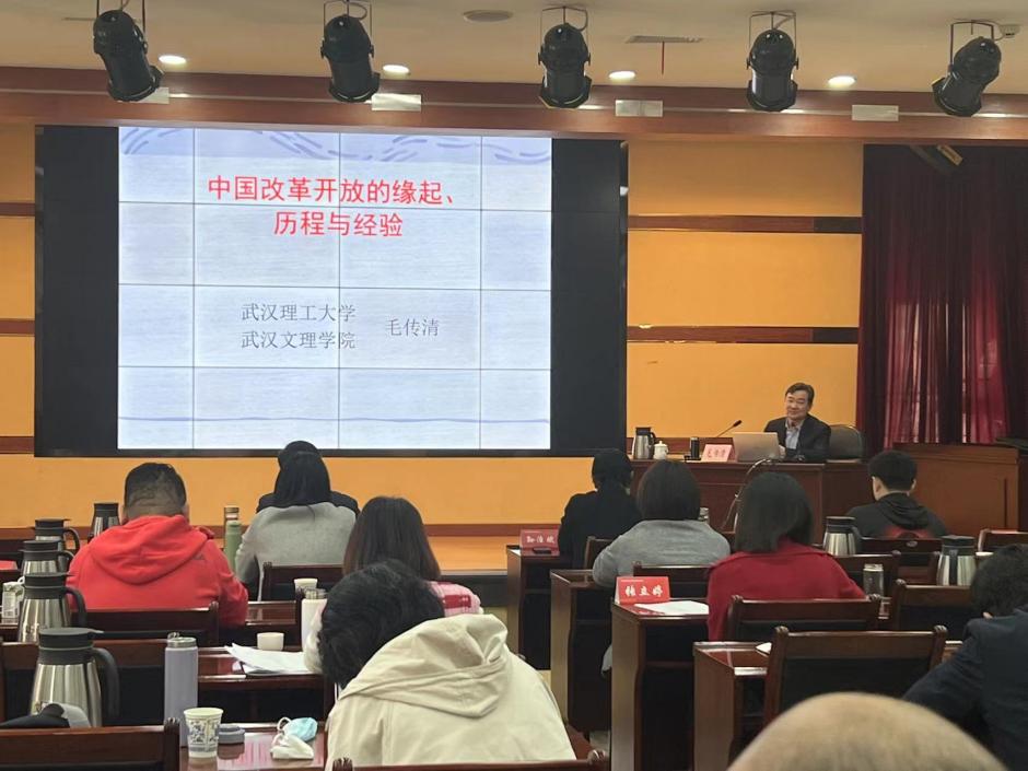 2023年3月10 日上午,公司永利3044noc经理、武汉理工大学毛传清教授应邀为2023年全省民主党派中青年骨干培训班授课。毛经理以“中国改革开放的缘起、历程与经验”为题,深入讲述了改革开放的历史前提和蕴酿探索、发展历程和基本特征、巨大成就和根本原因、伟大意义和基本经验,毛经理的讲课深入浅出,生动活泼,理论联系实际,材料数据丰富,既有思想高度和理论深度,又有很强的针对性和感染力,受到民主党派中青年骨干培训班学员的欢迎和承办方湖北省社会主义公司领导的高度评价。