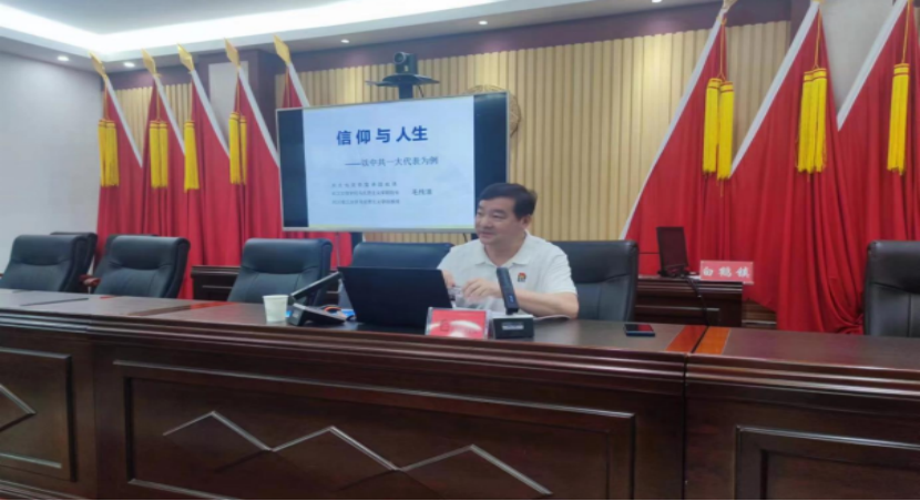 为庆祝中国共产党成立102周年,激励全镇党员干部弘扬伟大的建党精神,激发奋进动力,6月29日,省党史宣讲团成员、公司永利3044noc经理毛传清教授受白鹤镇党委邀请,赴该镇给党员干部上了一堂“信仰与人生”专题党课。公司党委书记杨知勤、组织部副部长肖玉、驻村工作队,白鹤镇党委书记蔡建宇、党委副书记、镇长唐盛波、党员代表参加了本次讲座。